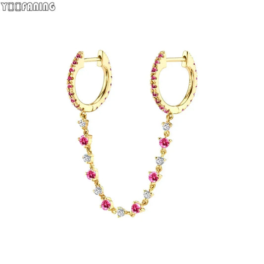 925 Sterling Silver Ear Needle Fashion Exquisite Hoop Earrings Classic Rose Red Series Earrings for Women Patty Jewelry Gift