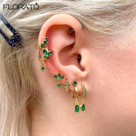 925 Sterling Silver Needle Luxury Green Zircon Pendant Earrings Trend Gold Color Small Hoop Earrings for Women Fashion Jewelry