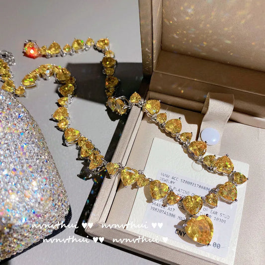 2023 Trend Luxury S925 Silver Full of Cubic Zirconia Heart Necklace for Women Noble Classic Engagement Statement Fine Jewelry