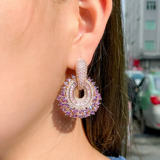 ThreeGraces Bohemian Shiny Purple Pink Cubic Zirconia Dangle Huggies Earrings for Women Fashion Wedding Costume Jewelry ER718