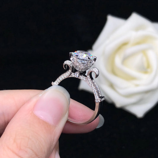 Solid 14K White Gold Ring 2CT Round Brilliant Diamond Engagement Ring For Woman Fine Jewelry Love Promise Gift For Girl Friend