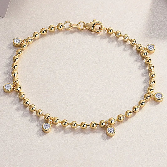 Vlen Women's Bracelets Jewelry 3mm & 5mm Beads Chain Waterproof 18 K Gold Plated Accent Bracelet for Women Minimalist Pulseras