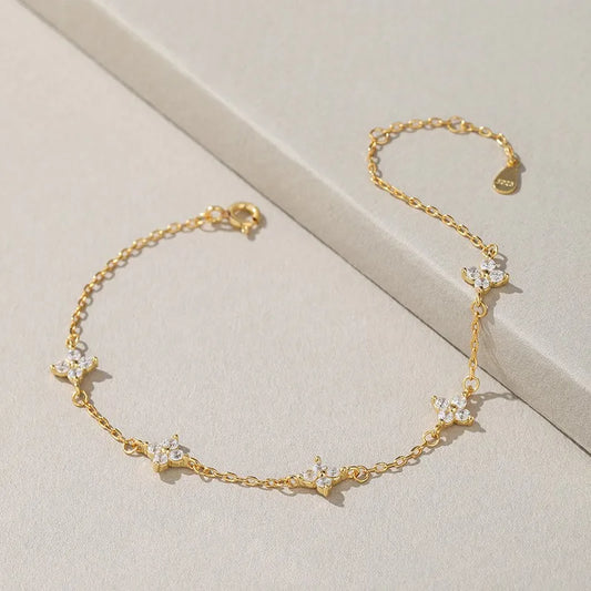 CCFJOYAS 100% 925 Sterling Silver Mini Flower Zircon Bracelet for Girl Minimalist 18k Gold Plated Lucky Bracelet Fine Jewelry