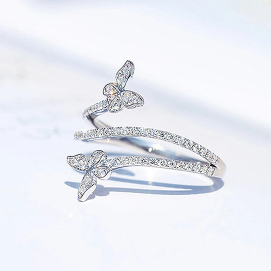 Huitan Exquisite Butterfly Rings for Women Luxury Inlaid Bling Bling Cubic Zirconia Temperament Female Accessory Fashion Jewelry