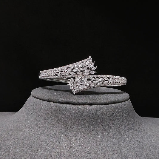Leaf Shaped Zircon Inlaid High-end Fashionable Open Bracelet Simple And Elegant Suitable For Daily Use