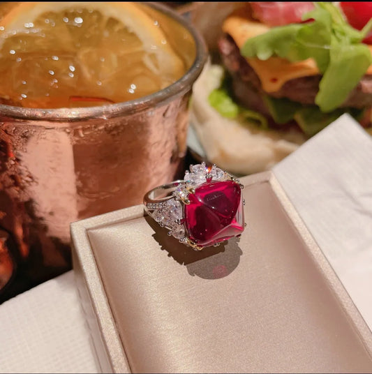 Ice white Zircon Open ring Female Princess square fashion ring jewelry