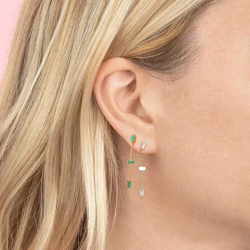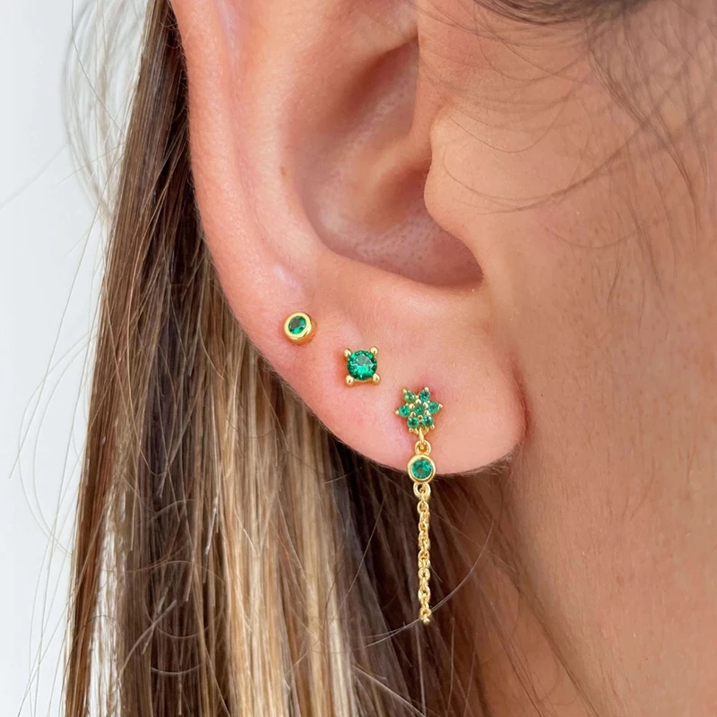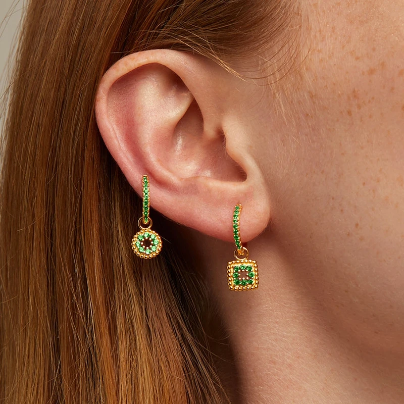 925 Sterling Silver Needle Luxury Green Zircon Pendant Earrings Trend Gold Color Small Hoop Earrings for Women Fashion Jewelry