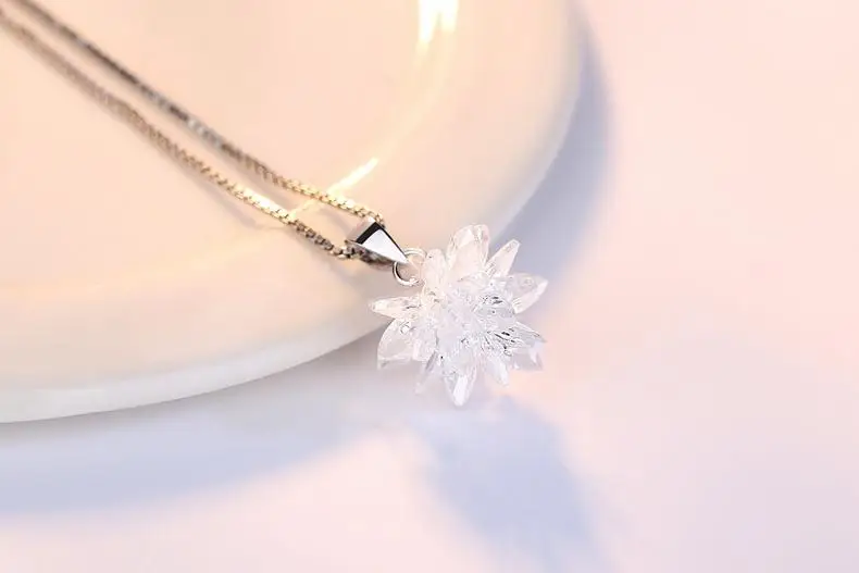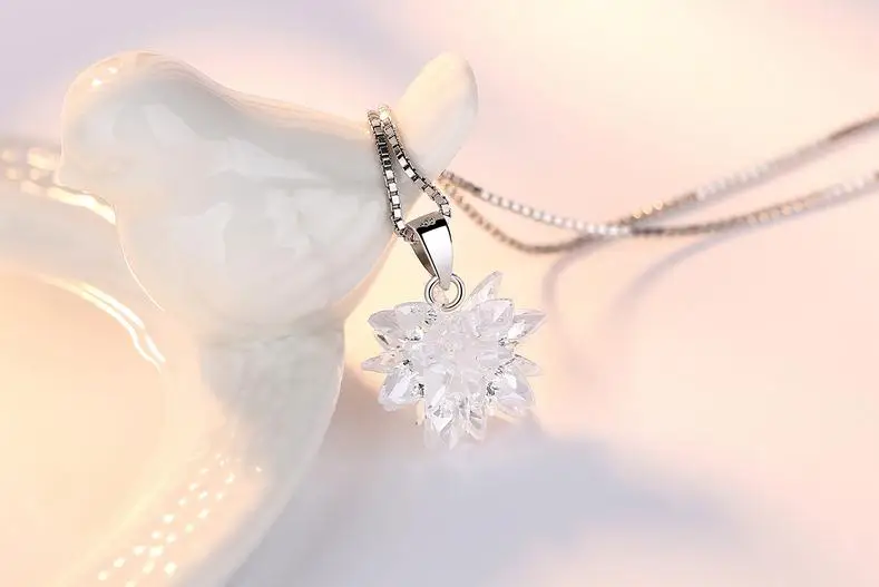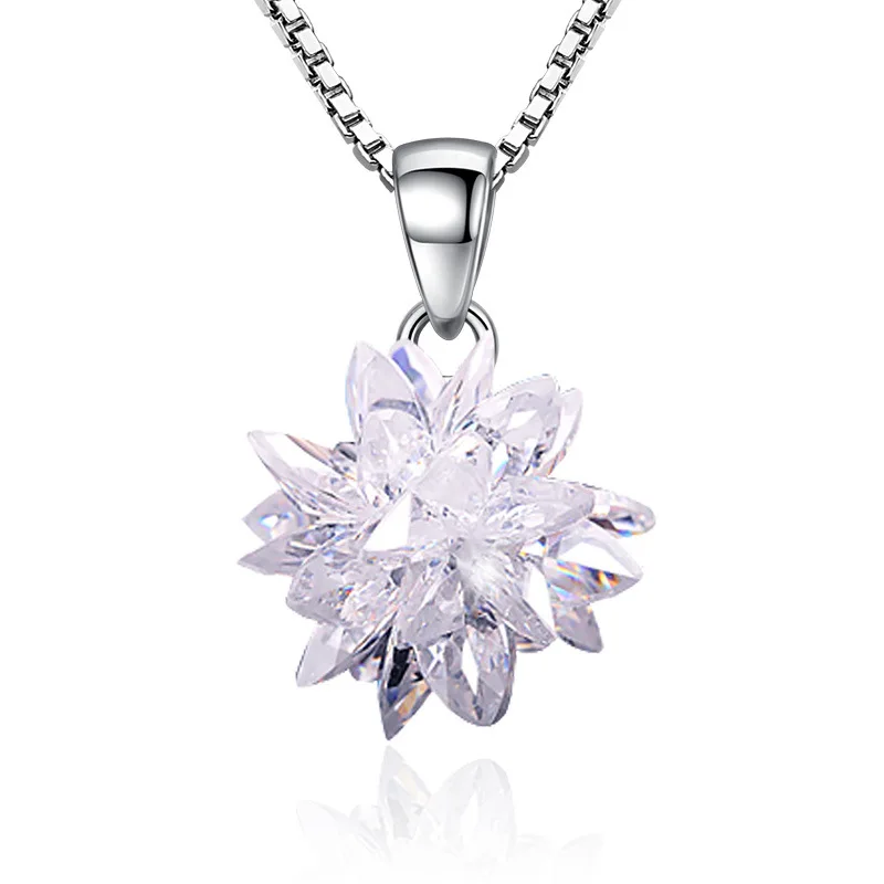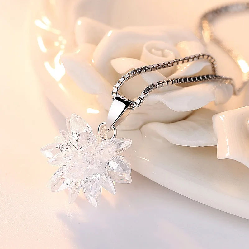 Fashion Shiny Crystal Ice Flower Platinum Plated Ladies Pendant Necklace Female Box Chain Jewelry Women Christmas Gift