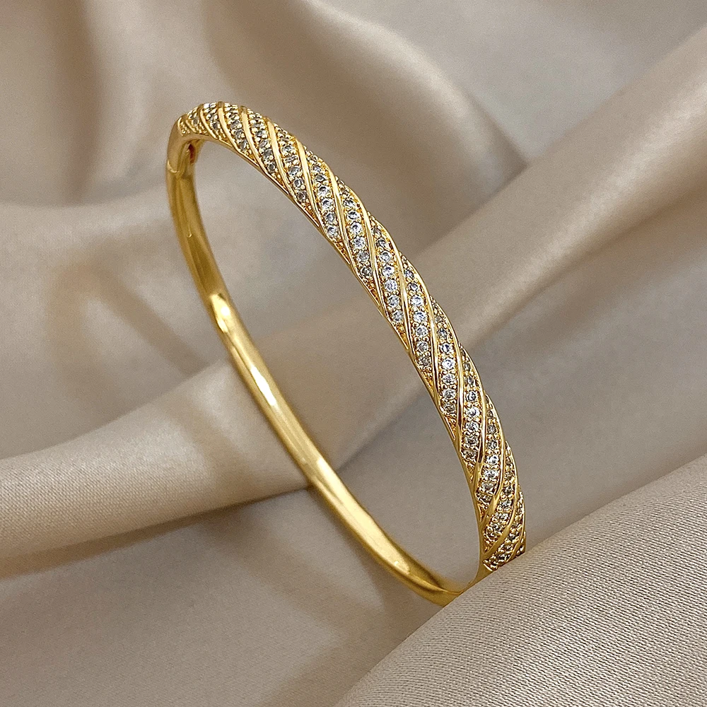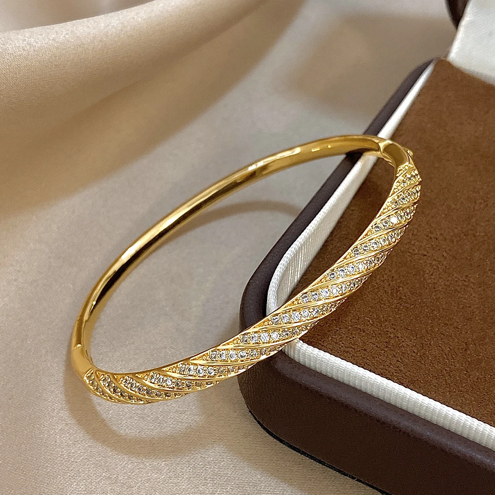 Luxury Twisted Micro Inlaid Zircon Cuff Bracelets for Women Fashion Gold Plated Copper Stacked Bangle Bracelet Jewelry Gifts
